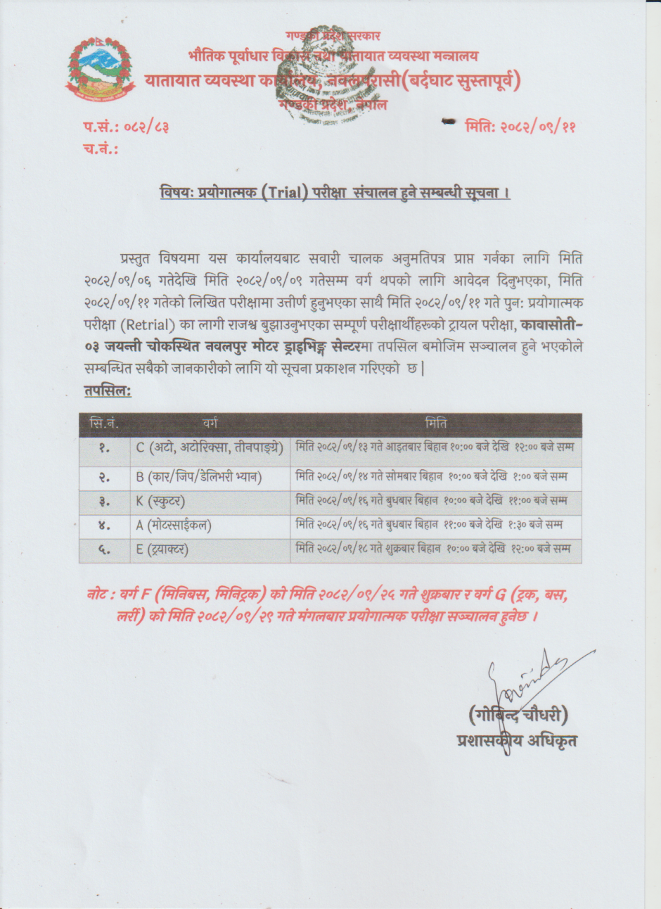 मिति २०८२-०९-१६ गते हुने वर्ग (A,र K) को ट्रायल परिक्षामा सहभागी नामावली (यो हप्ता को लिखित परिक्षा २०८२-०९-१७ गते बिहिबार हुन्छ )|