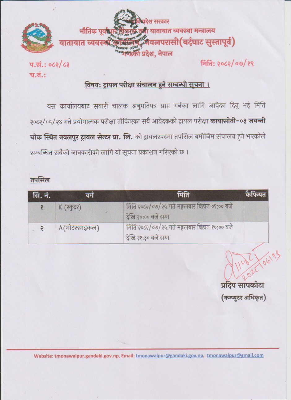 © सर्वाधिकार सुरक्षित यातायात व्यवस्था कार्यालय, नवलपरासी