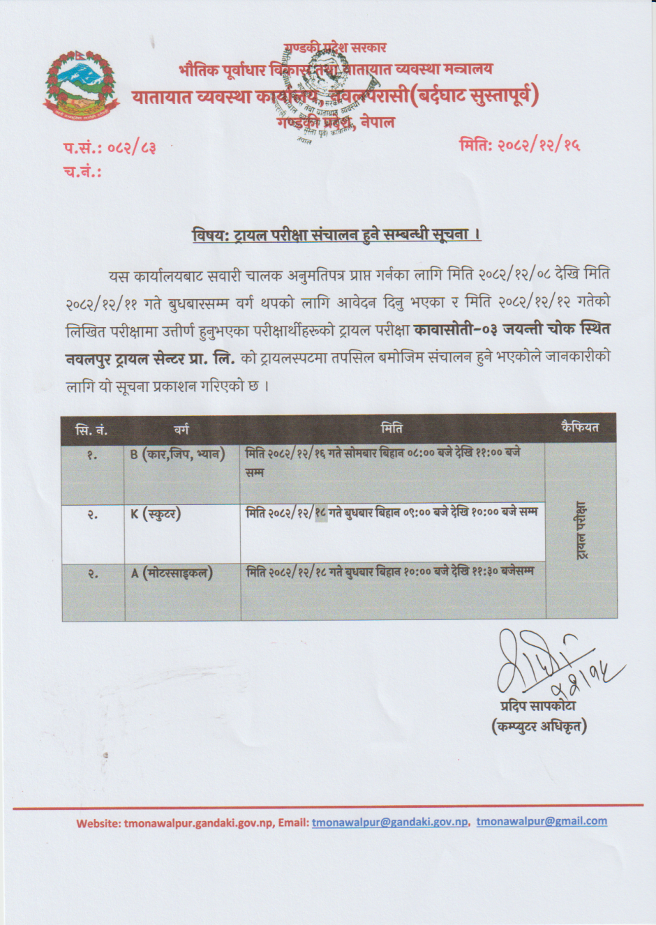 © सर्वाधिकार सुरक्षित यातायात व्यवस्था कार्यालय, नवलपरासी