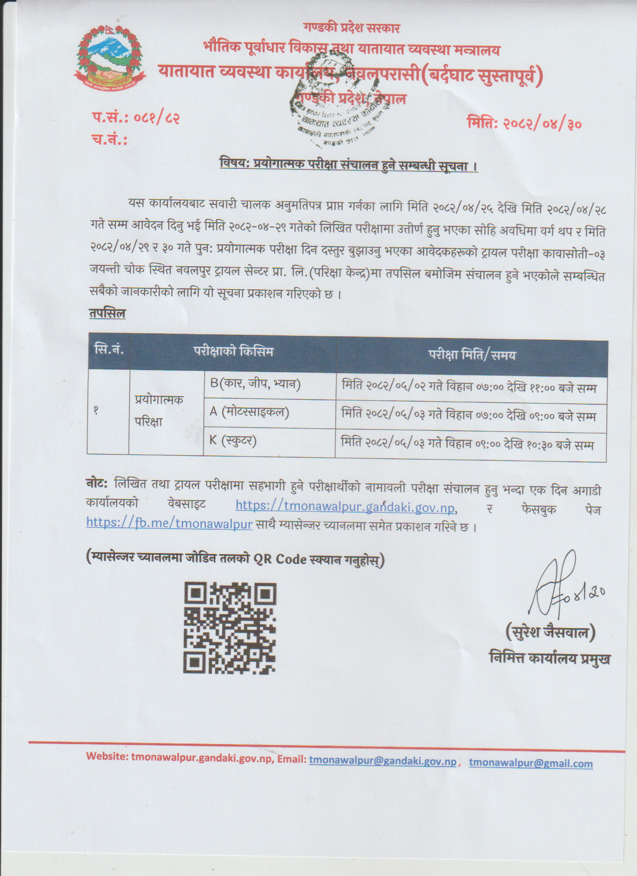 © सर्वाधिकार सुरक्षित यातायात व्यवस्था कार्यालय, नवलपरासी