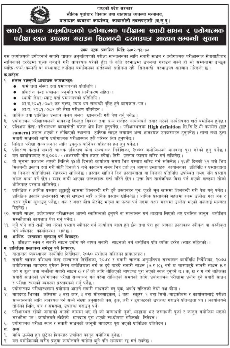 ट्रायल स्पट भाडामा लिन सिलबन्दी दरभाउपत्र आह्वान गरिएको सूचना